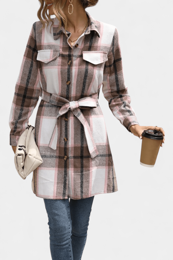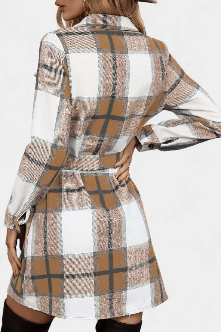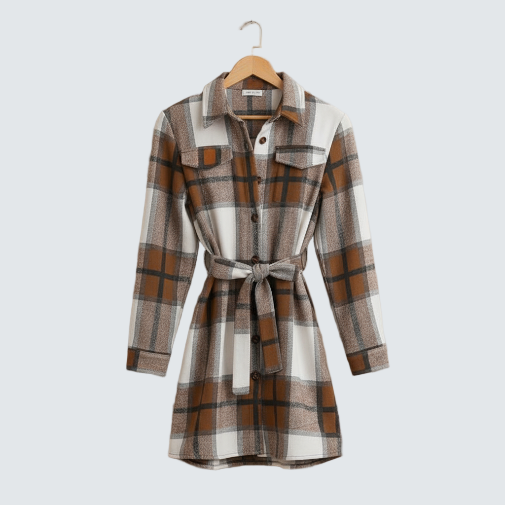 Роклята София съчетава класически ризиен силует с модерен подход към женската елегантност. Карето придава на роклята уникален характер, докато регулируемият колан оформя фигурата и създава балансирана силует. Мини дължината изглежда свежо и младо, без да отнема от сложността. Идеална за градски дни, работни срещи и неформални вечерни събития.