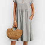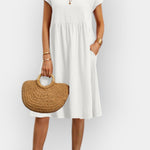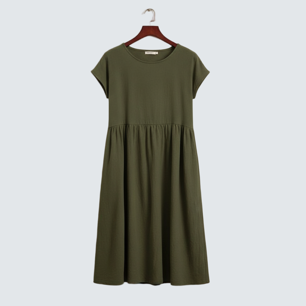 Роклята Арлена представлява перфектен баланс между простота и женствено очарование. Леката, дишаща материя осигурява приятна прохлада дори в най-горещите дни, докато миди дължината подчертава всяка фигура. Минималистичният дизайн позволява лесни комбинации — от обикновен ден до летни вечери.