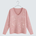 Този суитшърт комбинира елегантен дизайн с топъл комфорт. Изкусителен V-образен деколте и нежни плетени детайли ще придадат на вашия аутфит женственост, докато мек, топъл материал осигурява приятно носене. Фигурен крой пада свободно и ласкаво, без да изглежда тежък. Празничният плетен дизайн е идеален за празници, специални събития или стилен ежедневен вид. Суитшъртът Вера е универсален за стилизиране – перфектно се съчетава с дънки, поли или елегантни панталони.