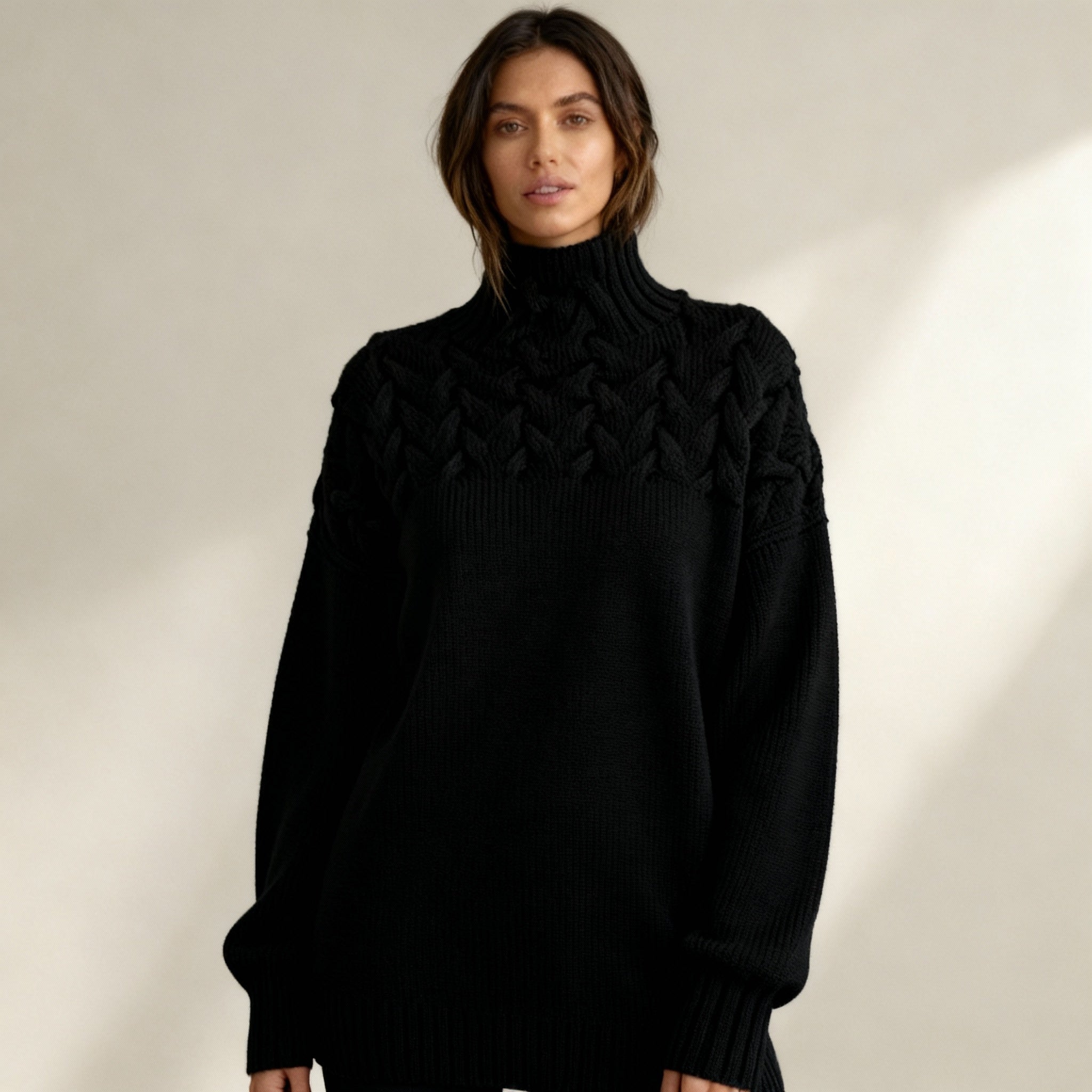 Добавете в гардероба си вечна елегантност с пуловера Ивана. Неговото нежно кабелно плетиво и класическият крой го правят перфектен избор за всеки ден – от работни срещи до свободни уикенд моменти. Този пуловер съчетава луксозен вид, комфорт и многофункционалност, която ще обикнете.