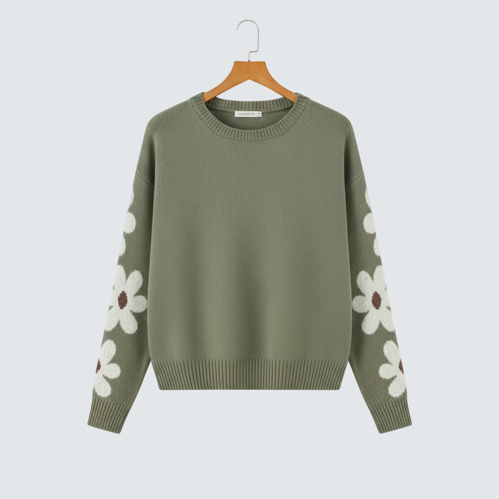 Пуловерът Ярмила носи романтичен чар и женска елегантност във вашия гардероб. Нежният цветен мотив на ръкавите придава игривост на аутфита, докато мекият материал осигурява максимален комфорт през целия ден. Идеален избор за жени, които обичат комбинацията от удобство, стил и оригиналност.