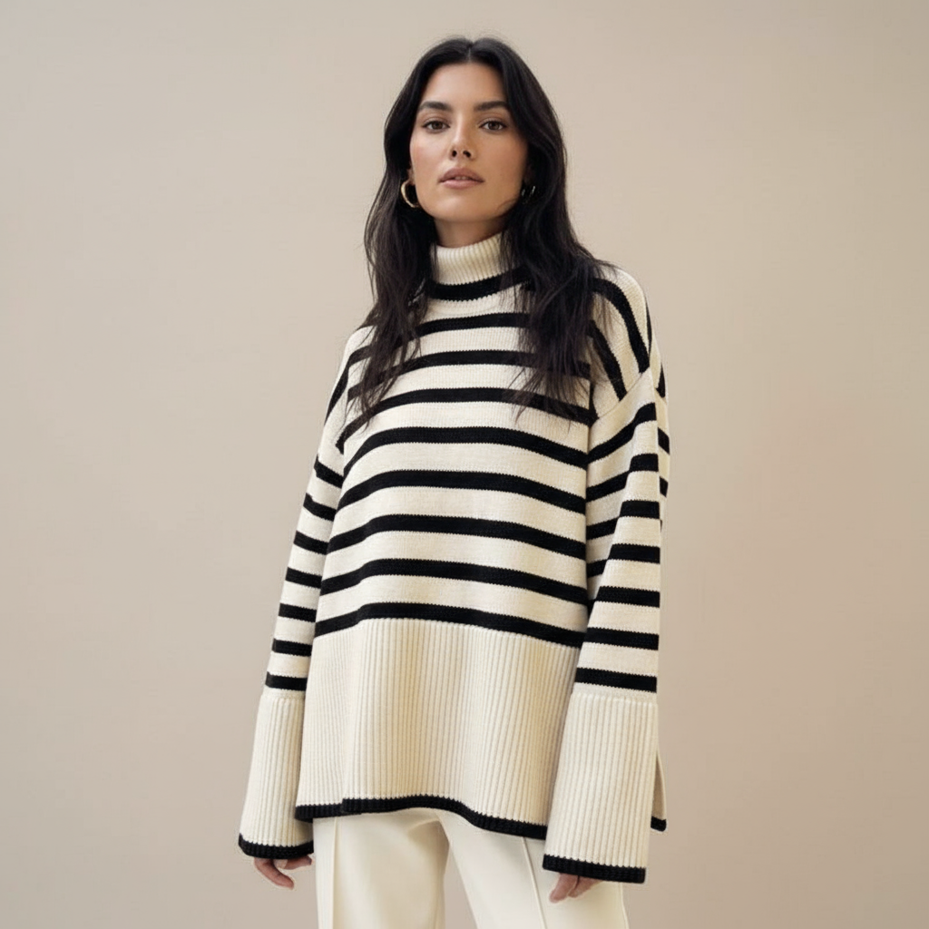 - Вечен дизайн: Раираните и чистите линии придават на пуловера елегантен и съвременен характер.