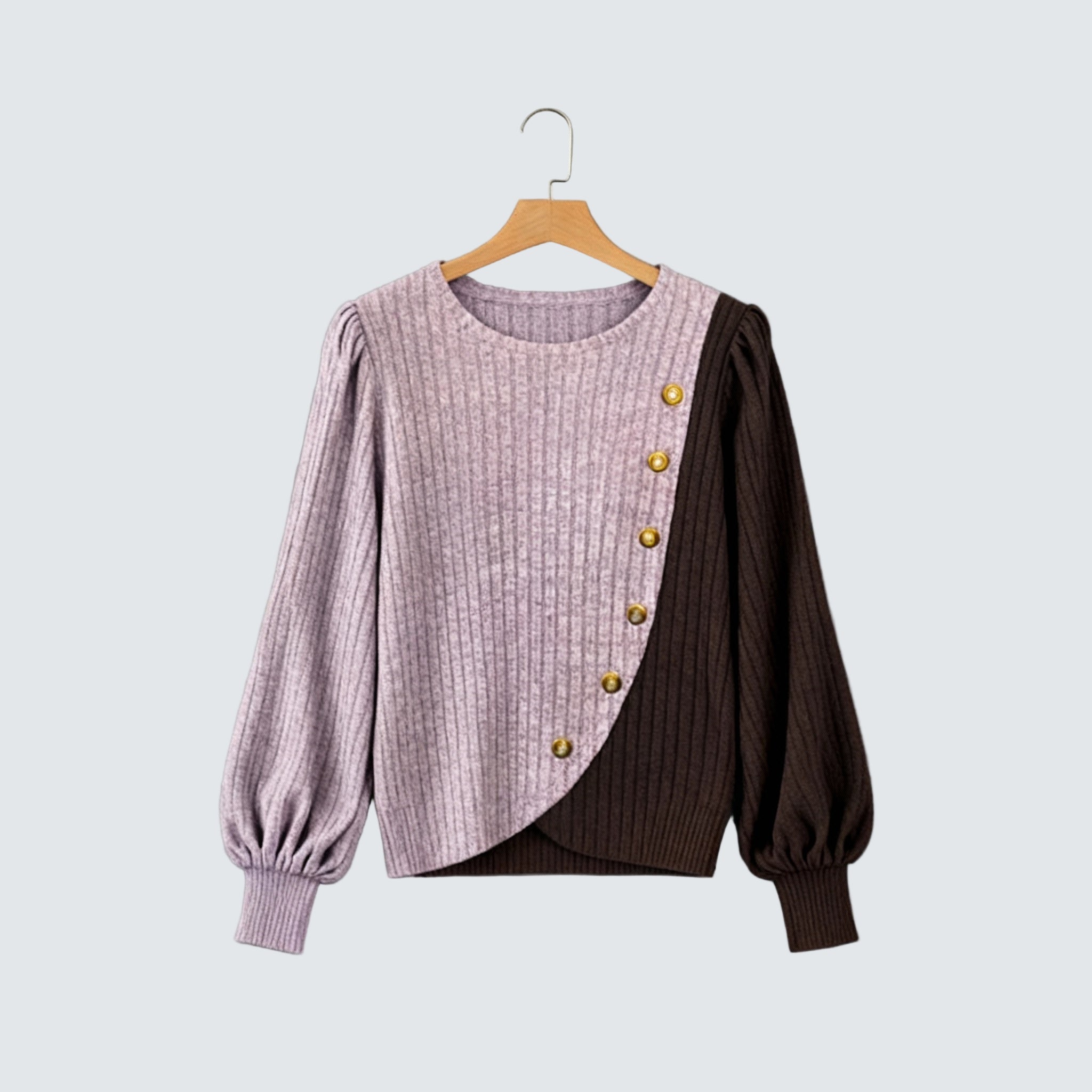 Люси | Асиметричен Плетен Пуловер с Копчета