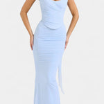 • Силует и корсет: Структурираният корсет оформя талията и създава изискана, контурирана силуета.