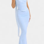 • Закопчаване и покритие: Скритият страничен цип осигурява елегантно и функционално обличане.
