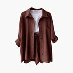 Fedezd fel a Victoria-t, egy könnyed és folyékony két darabból álló szettet, amely tökéletesen ötvözi a stílust és a kényelmet napos napokon. Ideális városi viseletre és nyaralásokra, biztosan a nyár alapdarabjává válik.