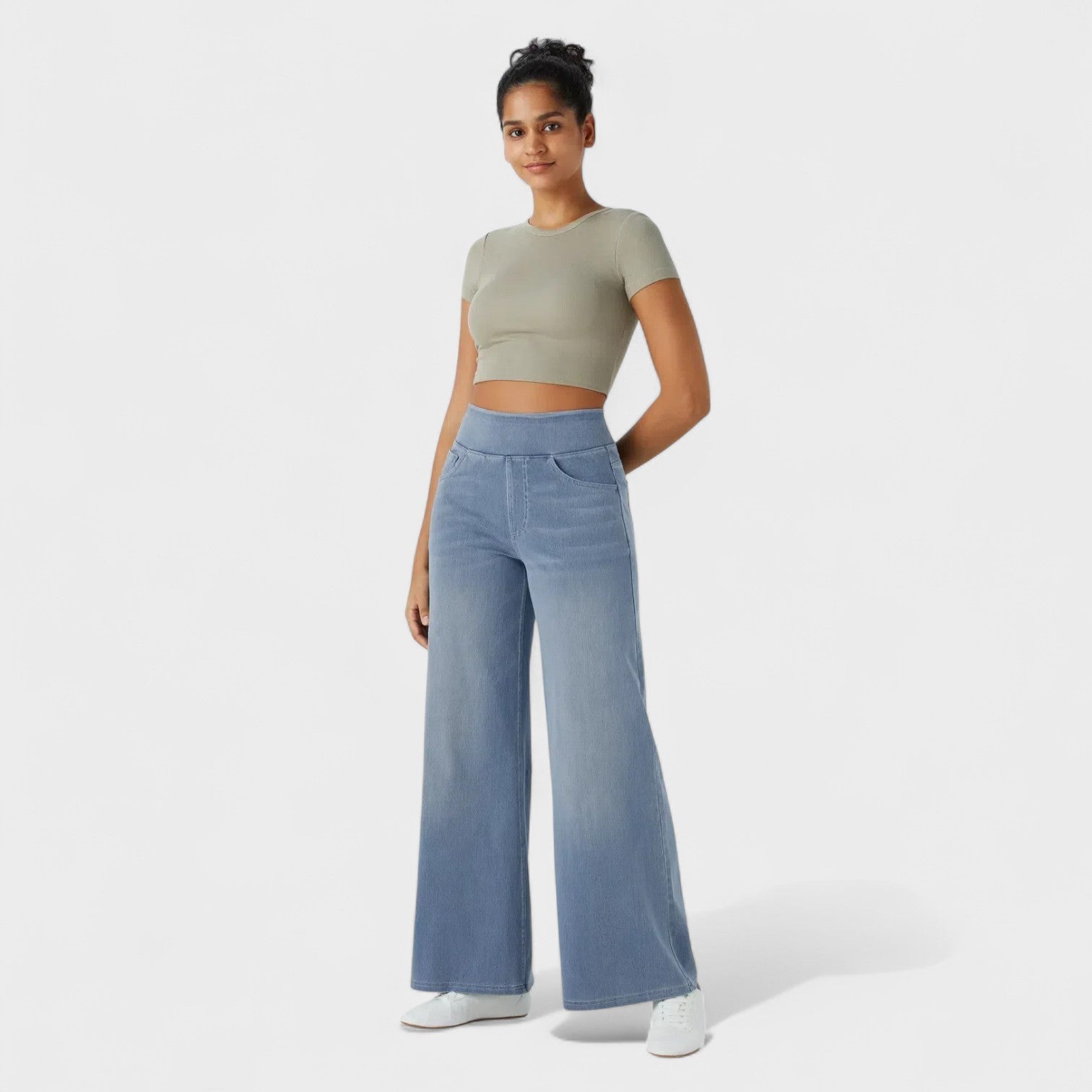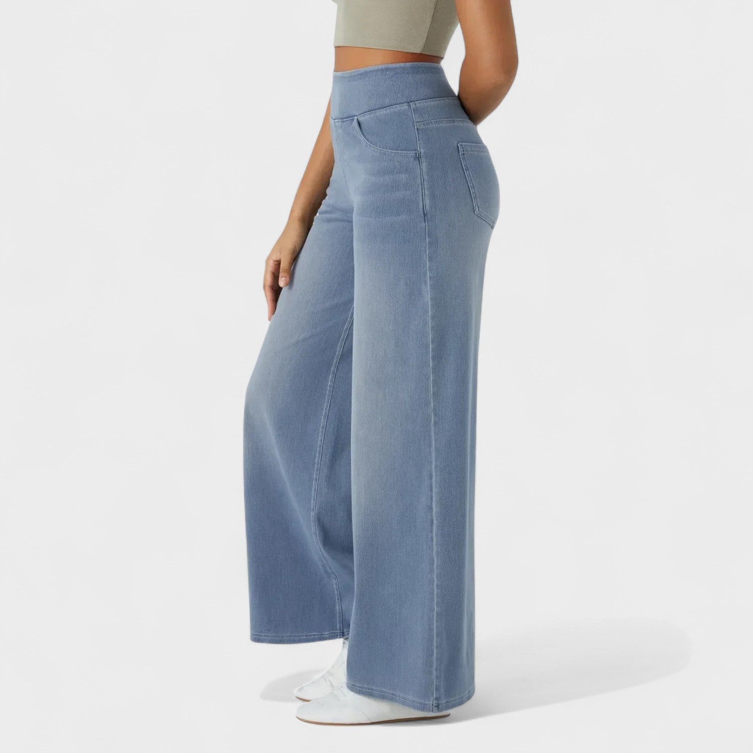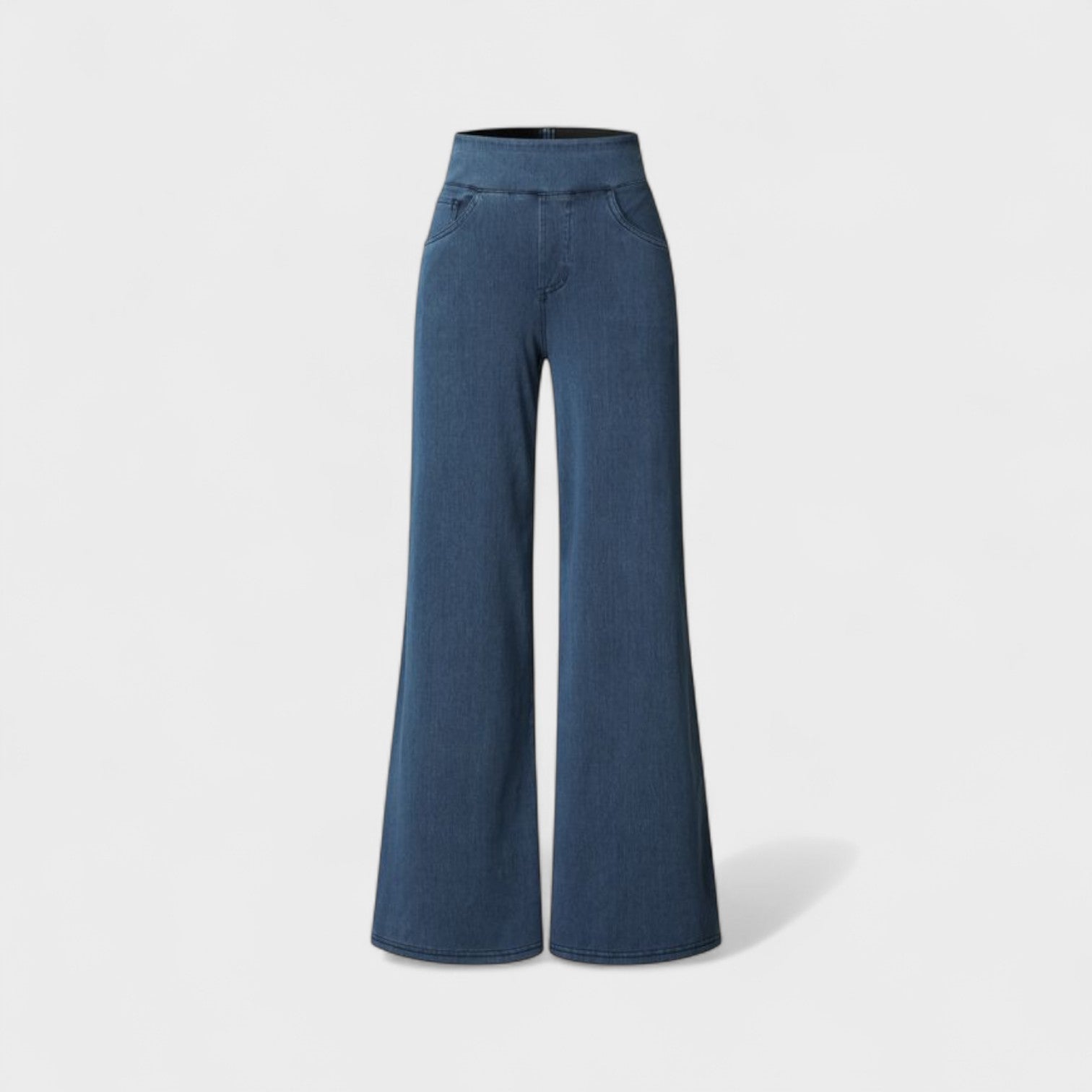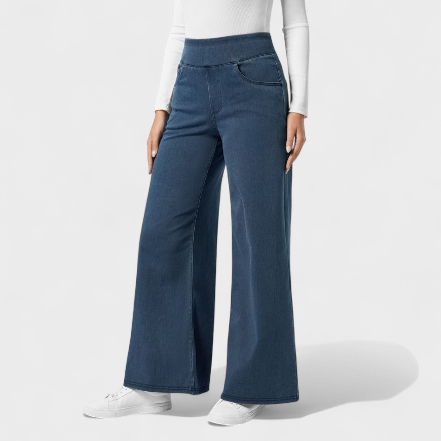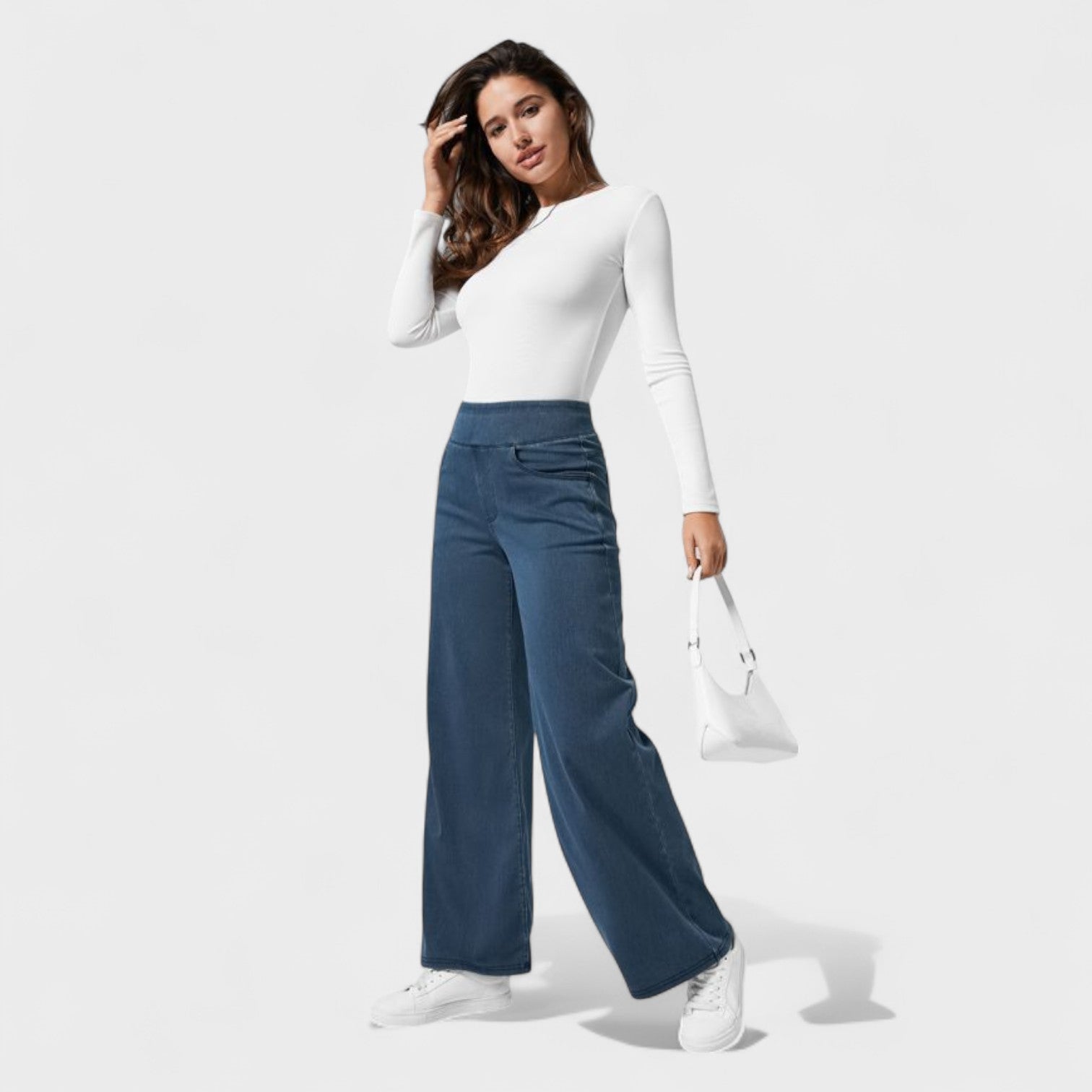 Fedezze fel a tökéletes egyensúlyt a kényelem és az elegancia között az Irene farmernadrágban. Széles szárú dizájnja karcsúsítja a sziluettet anélkül, hogy feláldozná a kényelmet, ideális aktív nők számára, akik minden nap jól szeretnének kinézni.