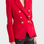 Lenyűgöző blézer, amelynek szabása kiemeli a sziluettet és hangsúlyozza a stílust. Elegáns hajtókával ellátott gallérral, elöl dupla gombos záródással és két oldalsó zsebbel rendelkezik. Időtlen dizájnja ideálissá teszi szakmai bemutatókhoz és esti programokhoz egyaránt, magabiztosságot és kifinomultságot biztosítva bármilyen alkalomra.