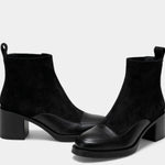 Женски елегантни велурени ботуши до глезена – блоков ток