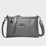 Elegáns női táska bordó színben, kiváló minőségű műbőrből készült, tartós varrással. Minimalista dizájnja négyzet alakú varrásokkal a fronton diszkrét eleganciát kölcsönöz, míg a fém logó egy csipetnyi luxust ad hozzá. Praktikus, levehető vállpánttal rendelkezik, amely kézben vagy vállon is viselhető, ideális a mindennapi megjelenéshez vagy formális alkalmakhoz.
